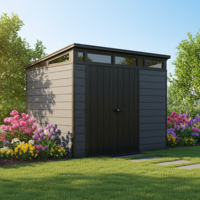 Met zijn strakke lijnen, ingebouwde ramen en aflopend dak, is dit tuinhuis een stijlvolle aanwinst voor elke tuin. - Duurzaam en onderhoudsvrij