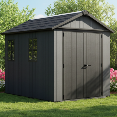 Met zijn strakke lijnen, ingebouwde ramen en zadeldak, is dit tuinhuis een stijlvolle aanwinst voor elke tuin.