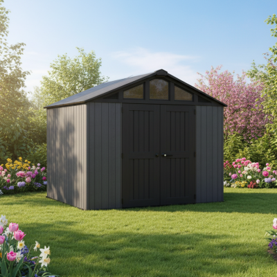 Met 7,7 m² opslagruimte biedt dit tuinhuis een efficiënte opbergoplossing voor zowel grote als kleine spullen. De brede dubbele deuren (152,5 cm breed en 183,5 cm hoog) maken het eenvoudig om grote objecten zoals een zitmaaier, barbecue of tuinmeubelen naar binnen te rijden. Het slimme ontwerp zorgt voor een flexibele indeling, zodat je de ruimte optimaal kunt benutten. Bovendien zorgen ingebouwde ventilatieroosters voor een constante luchtcirculatie, wat helpt om vochtproblemen te voorkomen.